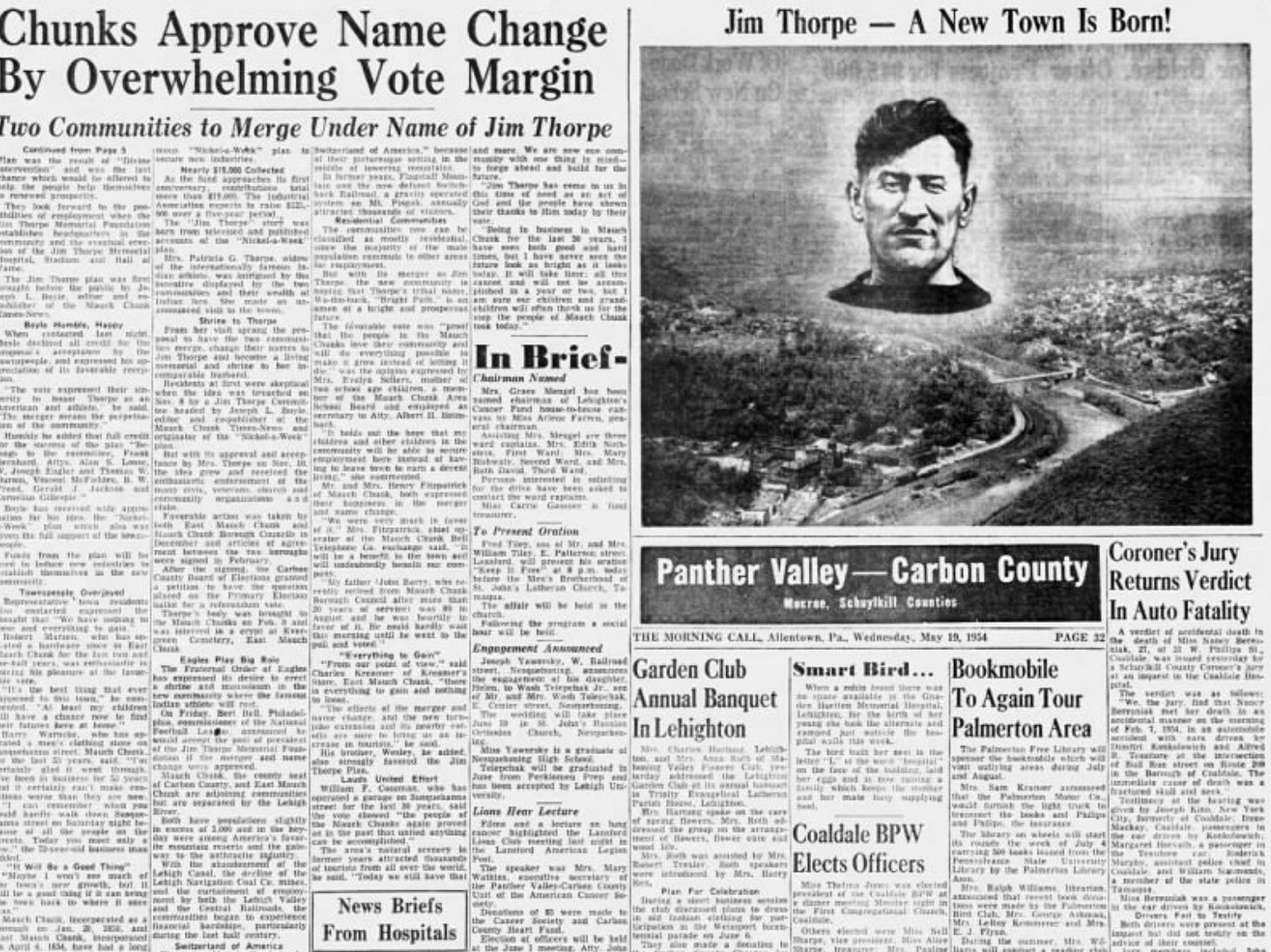 Usually by then, in the middle of the end of October, the trees would have already dropped most of their leaves. But fall had been warmer than usual in the Poconos and the steeply banked valleys along the Lehigh River kept their color wonderfully. There was a corresponding increase in traffic in Jim Thorpe, a scenic tourist town nestled along the river, named or rather renamed in honor of the American Indian athlete, despite him not ever setting foot in the place, at least while he was alive. As it happens, the original name of the town, Mauch Chunk, does have indigenous roots, meaning “Bear Place” in the Unami branch of the Lenape Language. While we were walking to brunch, a man shouted out from his lifted pickup truck that Jim Thorpe was “not that special” and that we should all “just go home”. — Too late for that, way too late.